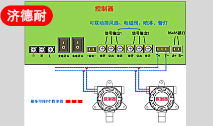 只接一條兩芯線 免調(diào)試、好安裝,與接電燈泡的原理一樣簡單方便,布線方式靈活方便,串聯(lián)、并聯(lián)均可,接線不分正負(fù)極,可接不同氣體的多個(gè)探頭,擴(kuò)展兼容性強(qiáng)。